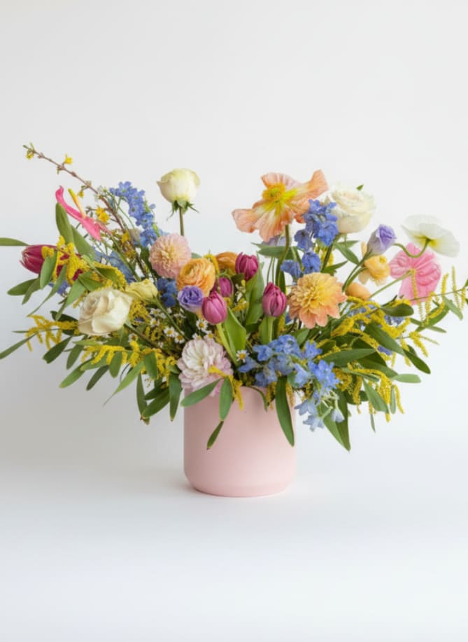 We offer custom flower delivery in Evergreen, using fresh, seasonal blooms arranged with care. Whether you're sending flowers for a birthday, Valentine's Day, or just because, we'll design something one of a kind to match the moment. Just tell us the colors, style, or feeling you want to share, and we'll bring your vision to life. You can also add a handwritten card or small gift to make it even more personal. Roses, tulips, ranunculus, and other seasonal favorites may vary, but we always keep the overall look and value of your arrangement just right.